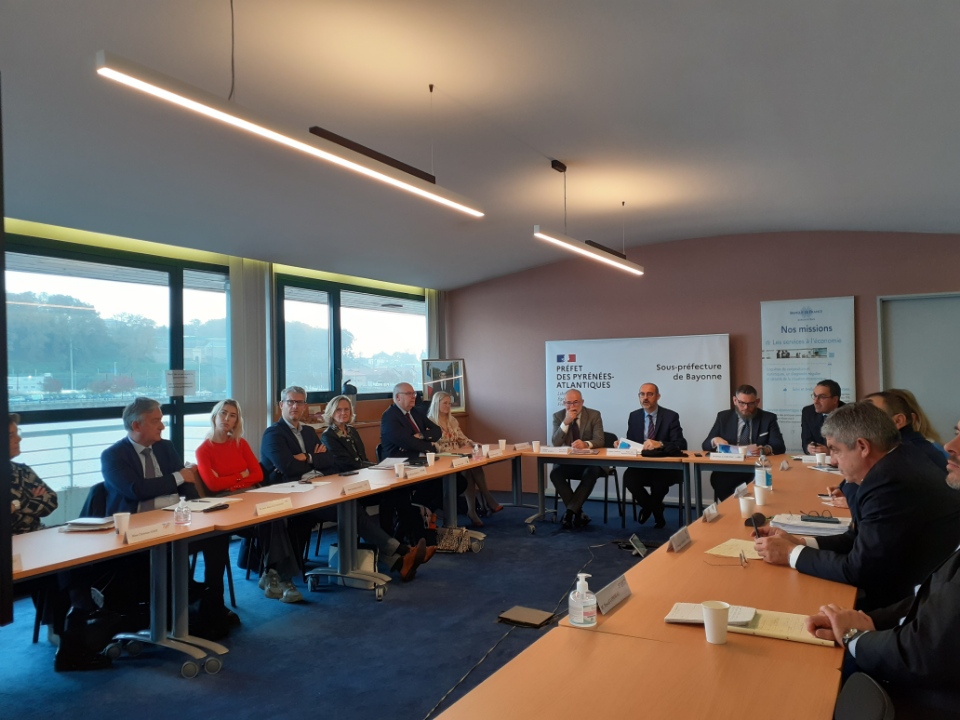 L’objectif de ces échanges était de partager les enjeux des acteurs économiques du territoire avec les directeurs régionaux et départementaux de la Banque de France, en présence du préfet Julien CHARLES, et du sous-préfet de Bayonne Philippe LE MOING SURZUR.